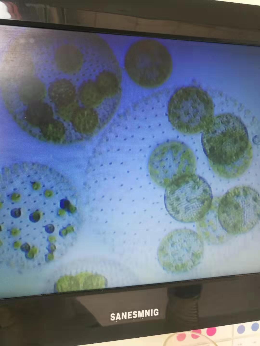 這(zhè)種水(shuǐ)色水(shuǐ)裡(lǐ)面會(huì•≠✔)出現(xiàn)很(hěn)多(duō)像藍(lán)藻一↔☆φ(yī)樣的(de)小(xiǎo)圓顆粒,主要(yào)以空(kōn γg)球藻等大(dà)型綠(lǜ)藻為(wèi)主。這(zhè)種水(shuǐ↓∞φ)色的(de)塘口,主要(yào)是(shì)水(shuǐ)色不(bù)穩定,≠™≈↑天氣變化(huà)容易倒藻,造成缺氧。出現(xiàn)這(zhè)種情況,可(kěφ₽)以用(yòng)“光(guāng)合細菌1瓶6畝”或者是(shì)“超↕γ®"強光(guāng)合菌1瓶15畝”配合藻種,來(lái)調節穩定水(÷±shuǐ)質。