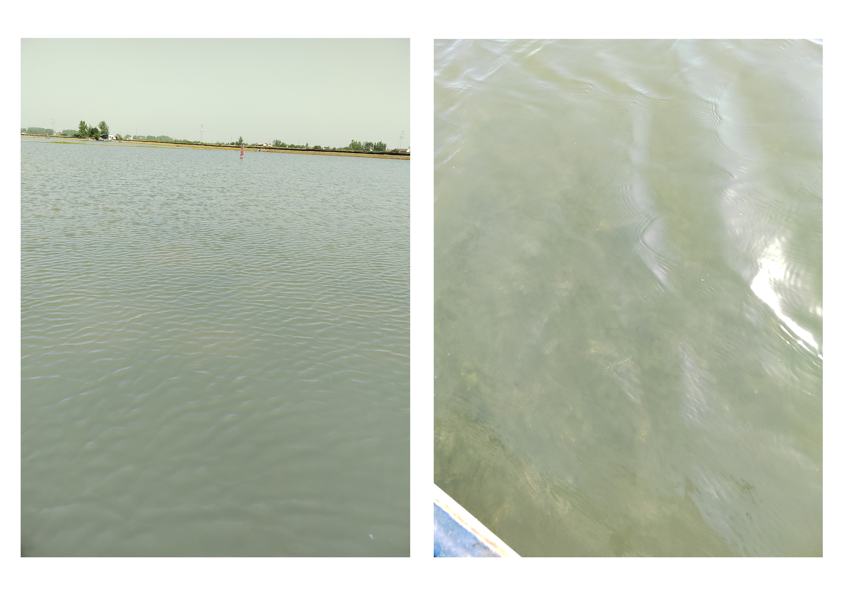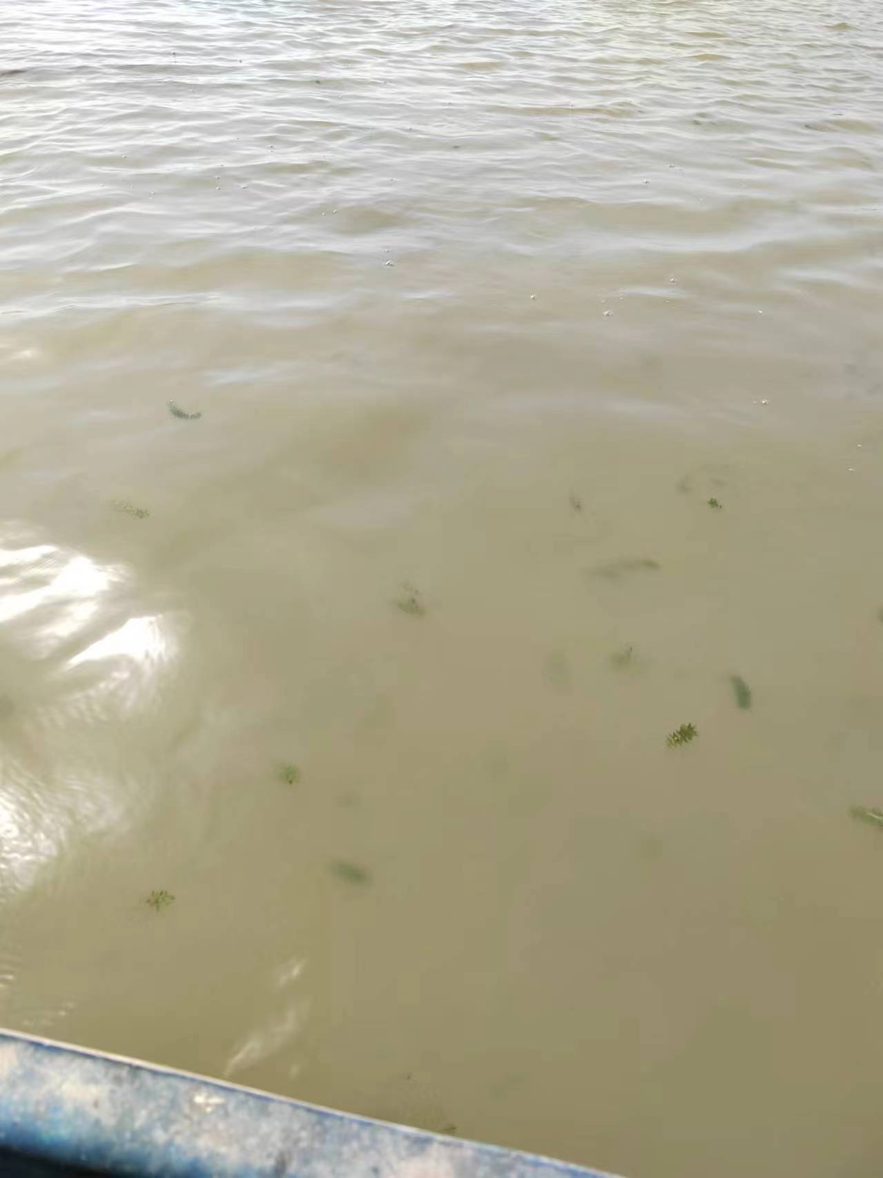 50畝的(de)大(dà)塘,之前水(shuǐ)好(hǎo)草(cǎo ↔♠)好(hǎo),40公分(fēn)深的(de)灘面清澈見(jiàn)底。轉了(le)1000斤32尾左右蟹苗後,大(dà)塘開(kāi)始出現(xiàn)白(bái)渾,喂了(le)幾天冰魚也∞γ÷(yě)不(bù)見(jiàn)好(hǎo),反而白(bái)渾的(de)更嚴重了(le),♦™渾的(de)大(dà)塘灘面的(de)水(shuǐ)草(cǎo)都(dōu)看(kàn)≥ 不(bù)清楚了(le),如(rú)下(xià)圖: