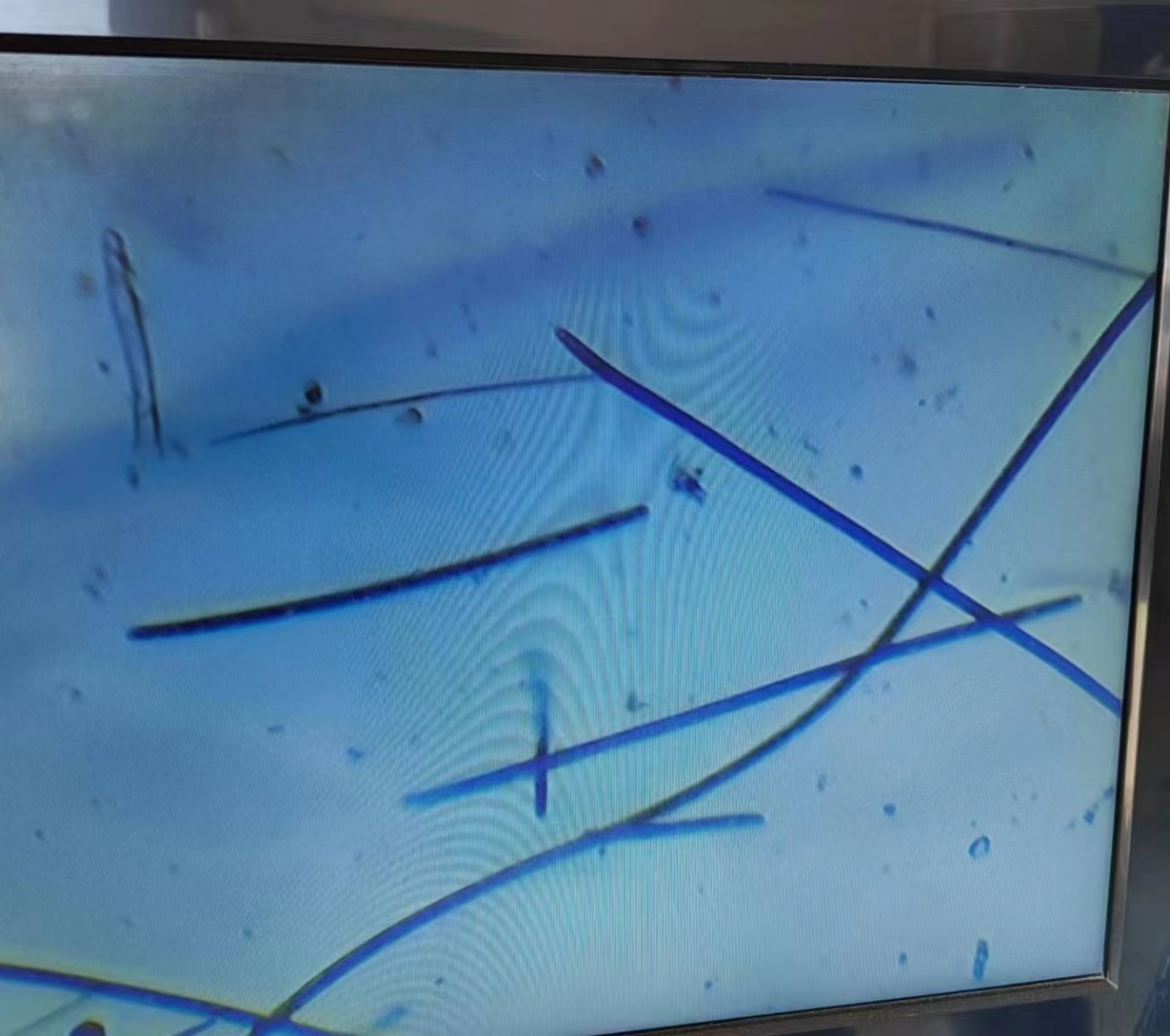 武漢東(dōng)山(shān)胡老(lǎo)闆,這(zhè)個(gè) ☆∑是(shì)一(yī)個(gè)20畝的(de)寄養塘,轉完蟹苗之後,空(kōng)塘栽草(cǎo),栽了(le)草(cǎo)Ω ↕之後,發現(xiàn)水(shuǐ)一(yī)直帶點肥,而且下(xià)×™風(fēng)處已經開(kāi)始有(yǒu)藍(lán)藻水(shuǐ)華。鏡檢之後 α≥§,發現(xiàn)全部都(dōu)是(shì)藍(lán)藻中的₹☆(de)顫藻,如(rú)下(xià)圖: