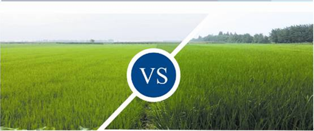 納克爾®複合微(wēi)生(shēng)物(wù)菌劑在水(shuǐ)稻上(shàng)的(de★₽"→)使用(yòng)效果(左為(wèi)對(duì)照(zhào)田,右為(wèγ§™i)處理(lǐ)田)