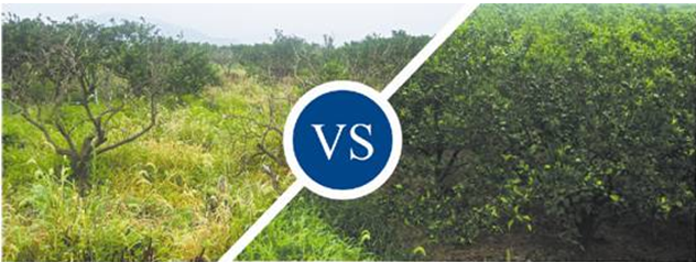 納克爾®複合微(wēi)生(shēng)物(wù)菌劑在果樹(shù)≠∞>上(shàng)的(de)使用(yòng)效果(左為(wèi)對(duì)照(÷→zhào)田,右為(wèi)處理(lǐ)田)